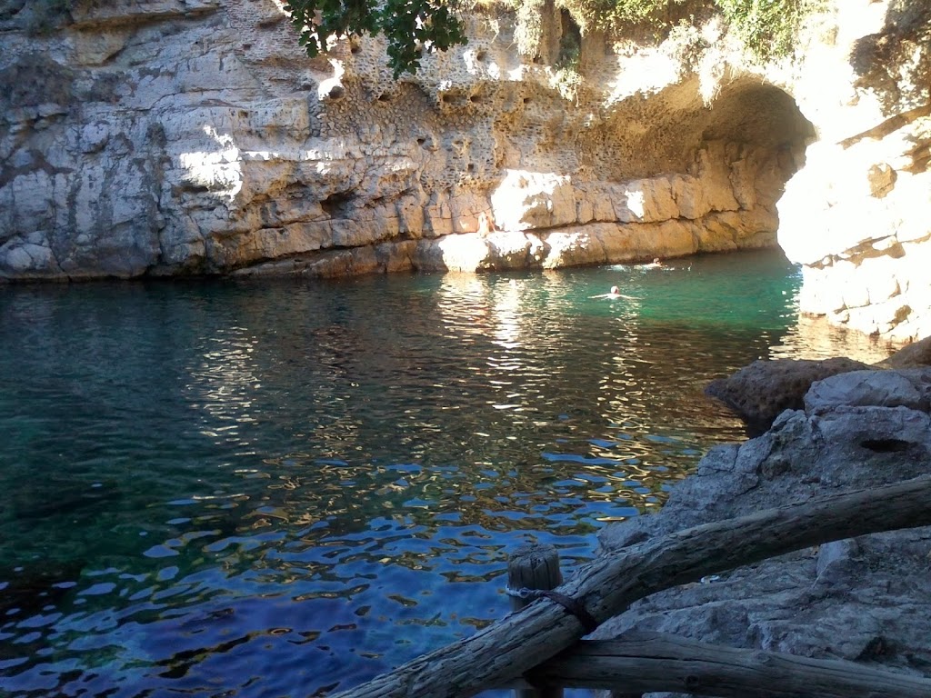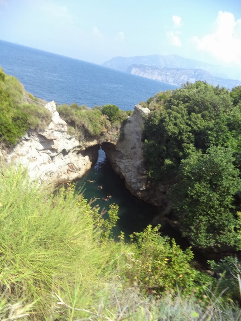 A strandra egy 5 perces séta vezet le. A vízpart közelében egy bár is található, ahol a napi jégkrém adagot elfogyaszthatjuk a nyári melegben.Hírességek is átlátogatnak gyakran ide Capriról, például augusztusban, amikor voltam itt, egyszer csak felbukkant Christian De Sica, aki híres olasz rendező, forgatókönyvíró és színész, aki legutóbb „Az utazóban” szerepelt mellékszereplőként. Caprin volt nyaralni és kikötött a jachtja az alagút bejárata előtt, majd beúszott, kb.10 percig maradt, utána visszament, mert mindenki felismerte és odamentek hozzá.