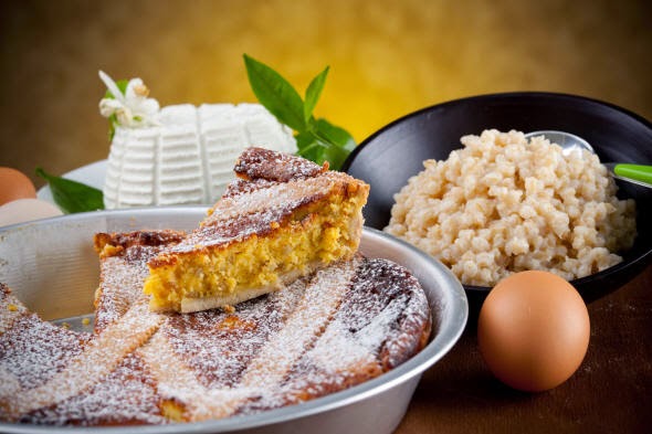 Utána tészta és valamilyen főétel következik bárányból. Desszertként errefelé “Pastiera”-t esznek, egy édes ricottás süteményt.